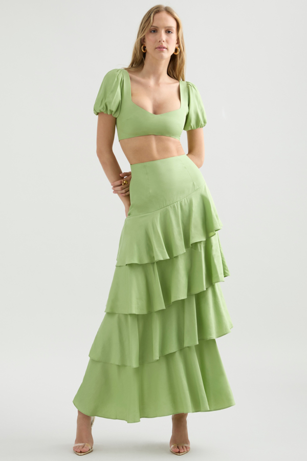 Our Priya Top features a cropped length, sweetheart neckline with puff short sleeves, zipper at the back. This garment has lining, light weight and no stretch. Body fabric 52% Rayon, 48% Polyester Lining 95% Polyester, 5% Spandex. Please refer to care label for garment care instructions. Colours may appear slightly different to the website due to lighting, computer picture resolution and monitor settings.