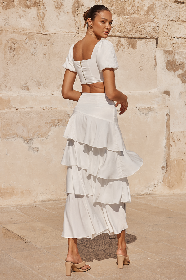 Our Priya Top features a cropped length, sweetheart neckline with puff short sleeves, zipper at the back. This garment has lining, light weight and no stretch. Body fabric 52% Rayon, 48% Polyester Lining 95% Polyester, 5% Spandex. Please refer to care label for garment care instructions. Colours may appear slightly different to the website due to lighting, computer picture resolution and monitor settings.